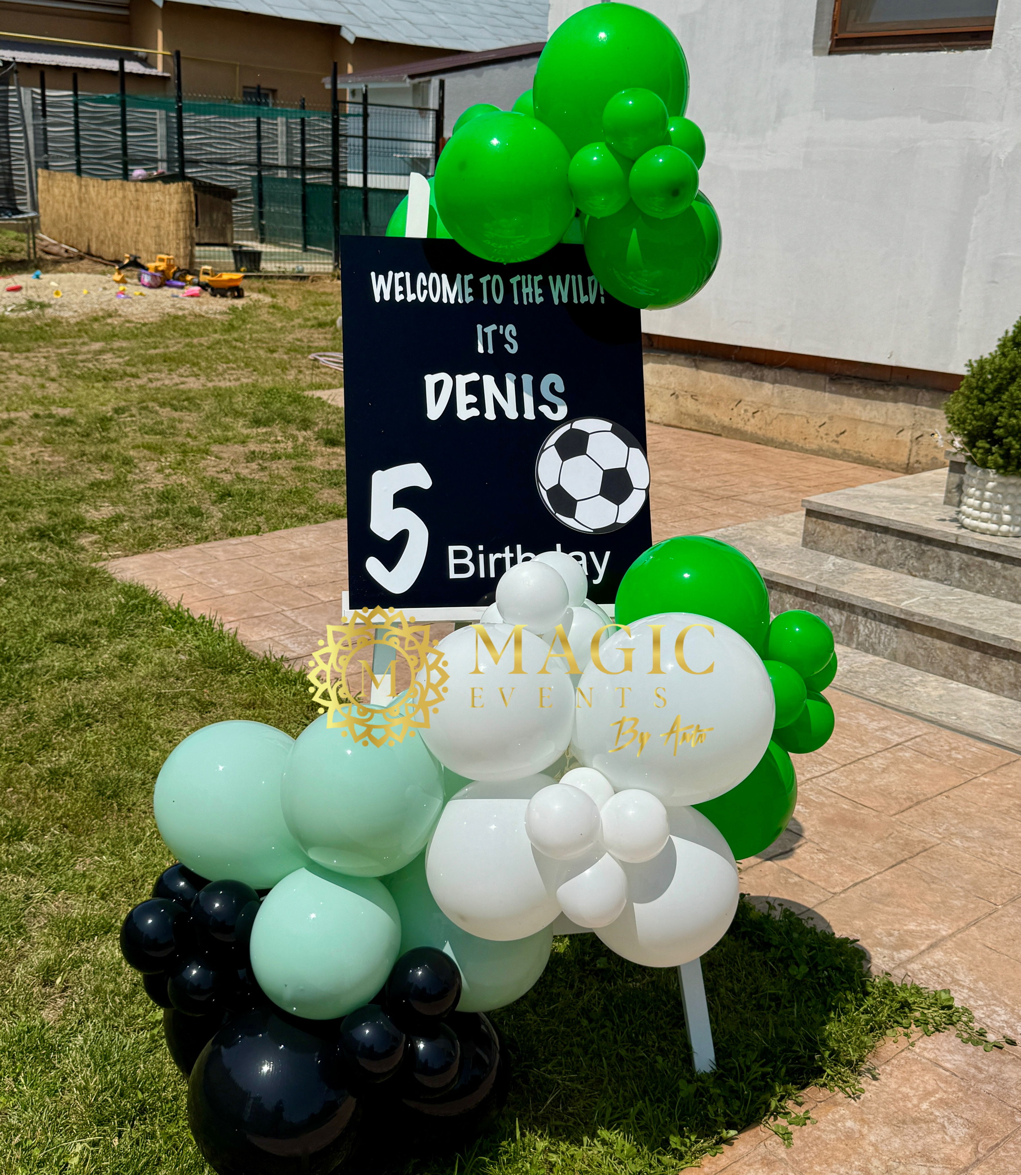 Decorat cu baloane colorate și detalii personalizate, ideal pentru a întâmpina invitații într-un stil plin de energie și aventură!