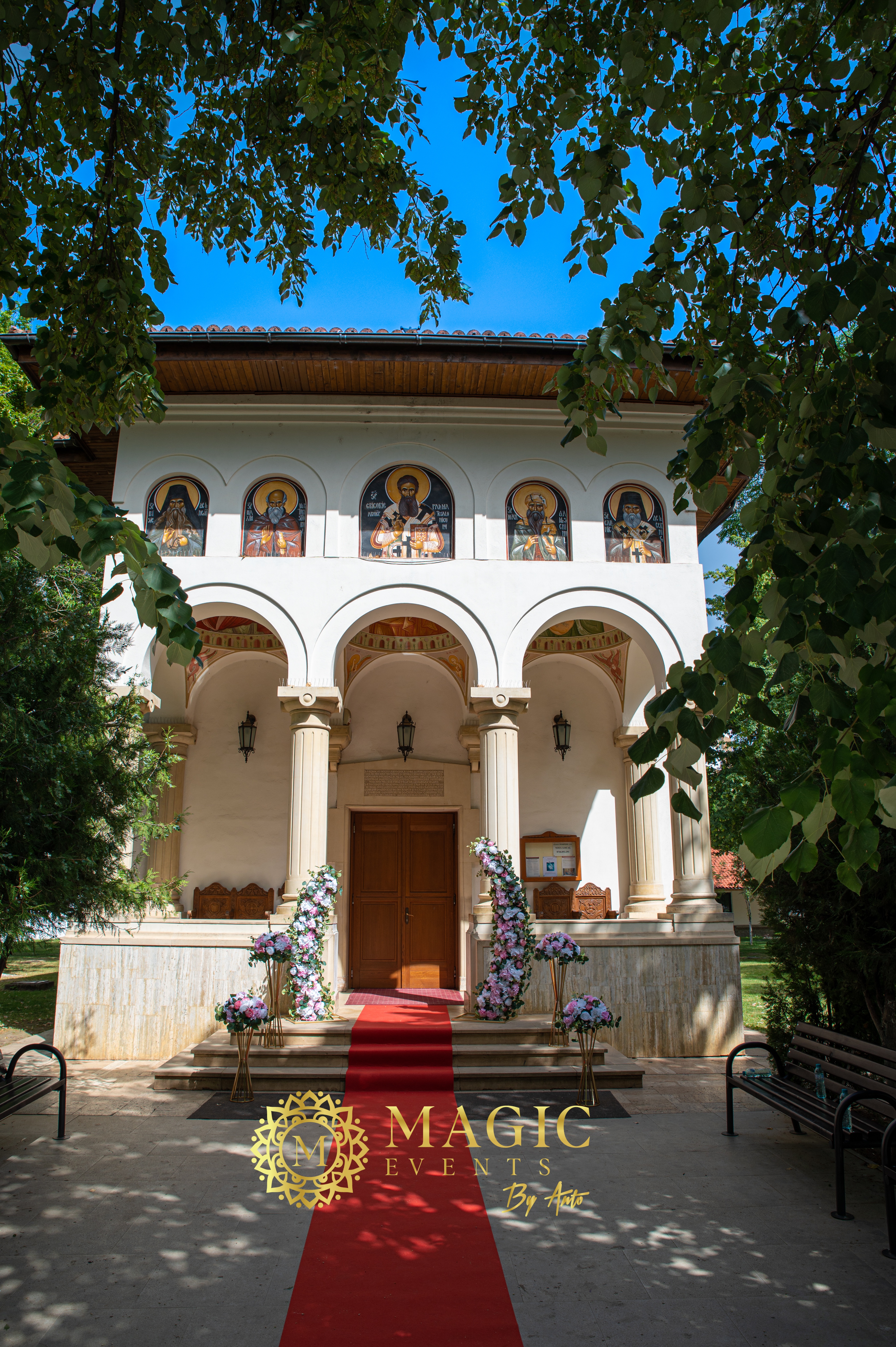 Aranjament floral intrare biserica