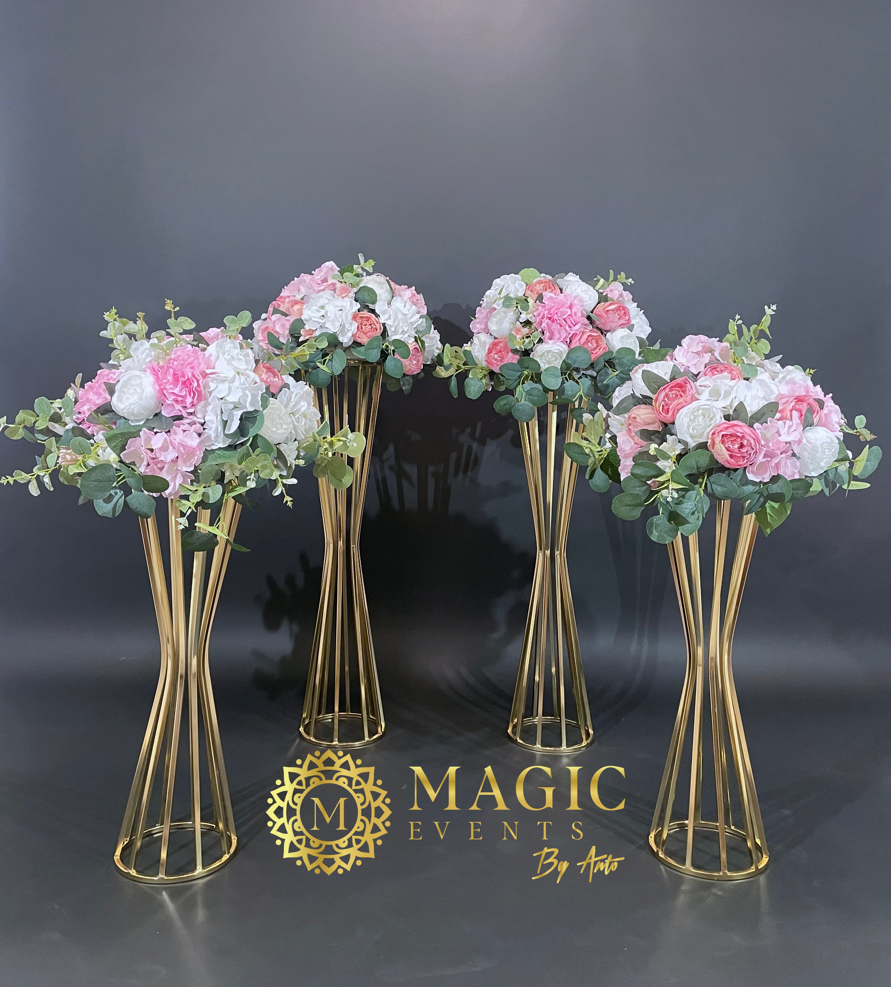 Stâlpisori aurii cu aranjamente florale
