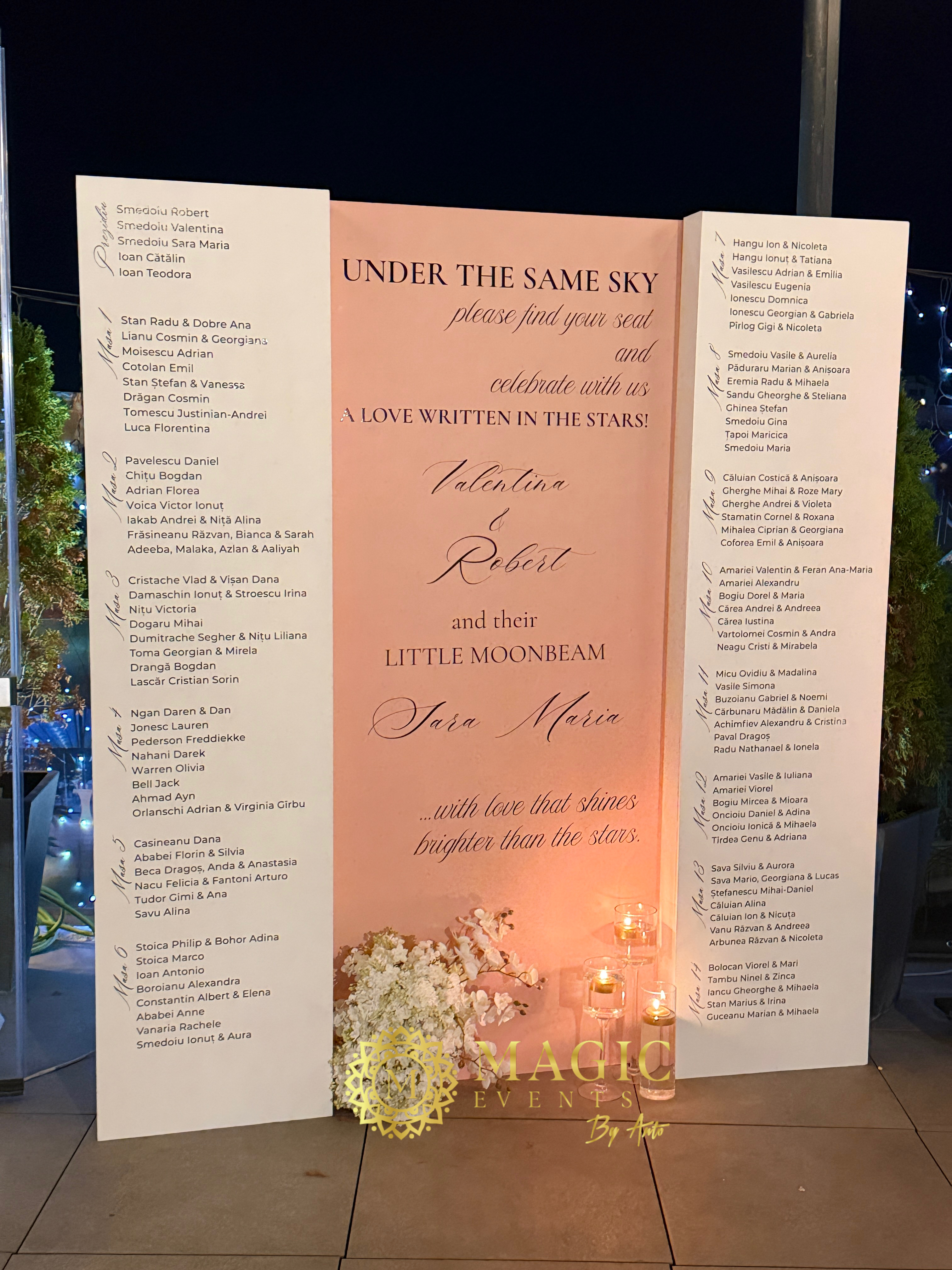 Un element esenÈ›ial pentru organizarea È™i eleganÈ›a evenimentului tău. Design personalizat, modern È™i rafinat, care îi ghidează pe invitaÈ›i către locurile lor È™i completează decorul cu stil.