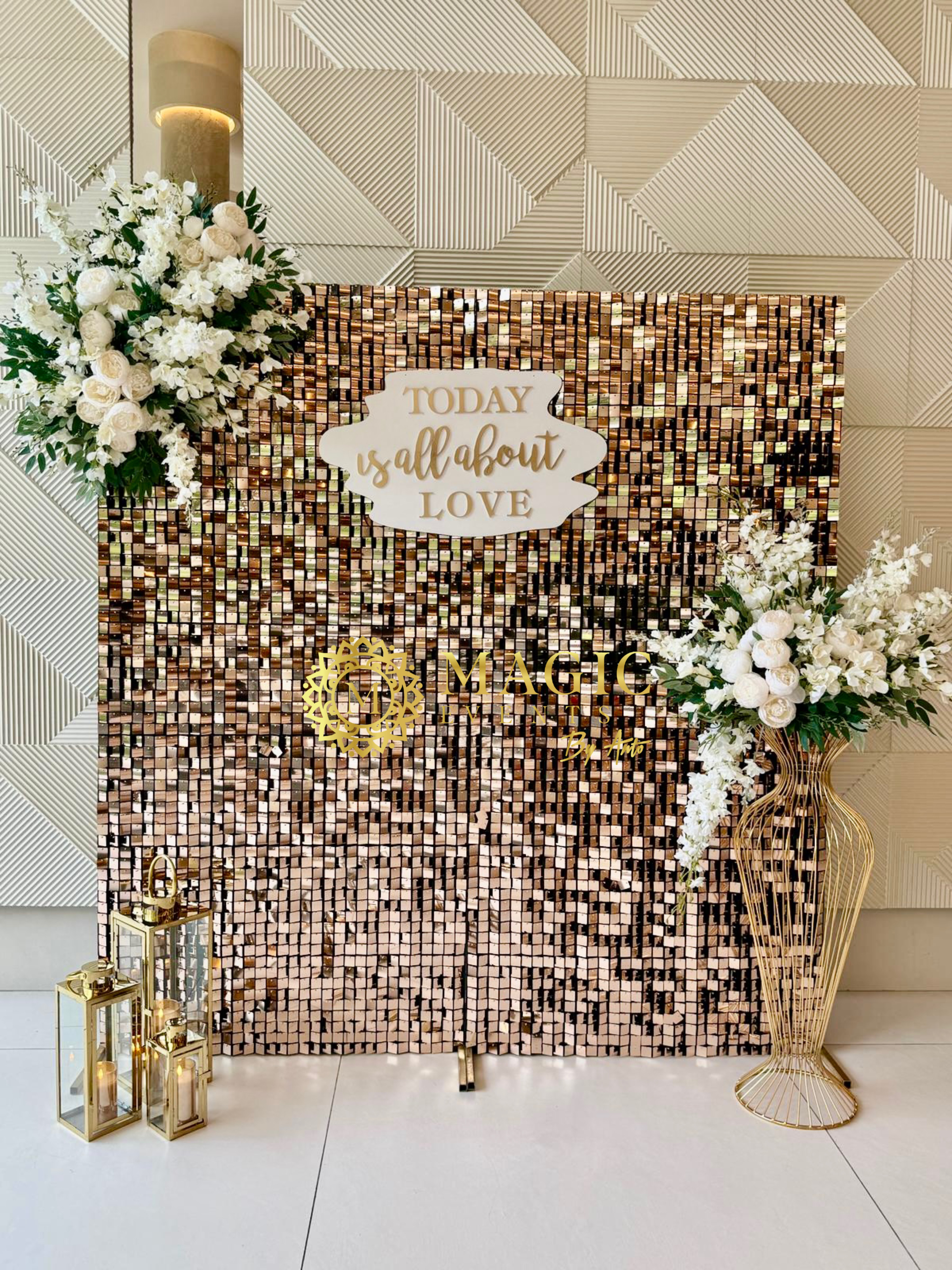 Photocorner elegant cu paiete aurii și mesajul „Today is all about love”